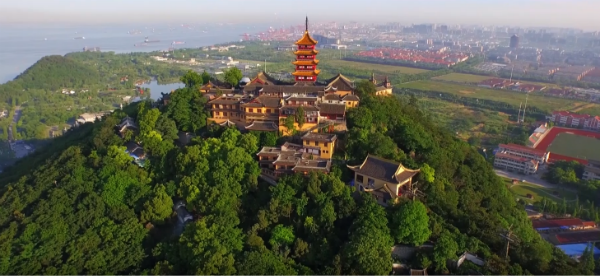 在狼山,觀賞江景的另外一個好地方就是觀江亭,不僅可以把長江景色盡收眼底,而且從這里還可以俯瞰到城市的景象,高樓林立的城市與古樸典雅的涼亭形成了鮮明的對比。