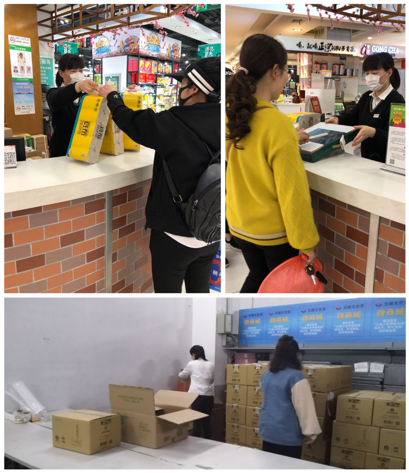 文峰千家惠微商城各網點的貨品打包中心,設置在線下門店內,將線上微商城和線下門店視同為一個整體,形成店倉一體的模式,保證了門店自身的靈活調整,從容應對顧客的集中采買。